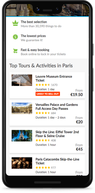 We decided that the first step to address the lack of browsing and exploration as to increase the visibility of the available activities which we hoped would simply increase the awareness of the breadth of GetYourGuide's offering and let users access those activities within a couple of clicks.